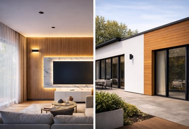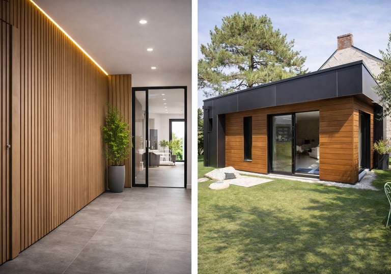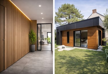 Pose de bardage intérieur et extérieur pour améliorer l'esthétique et la protection de vos espaces, avec des finitions soignées et des matériaux adaptés à chaque projet.